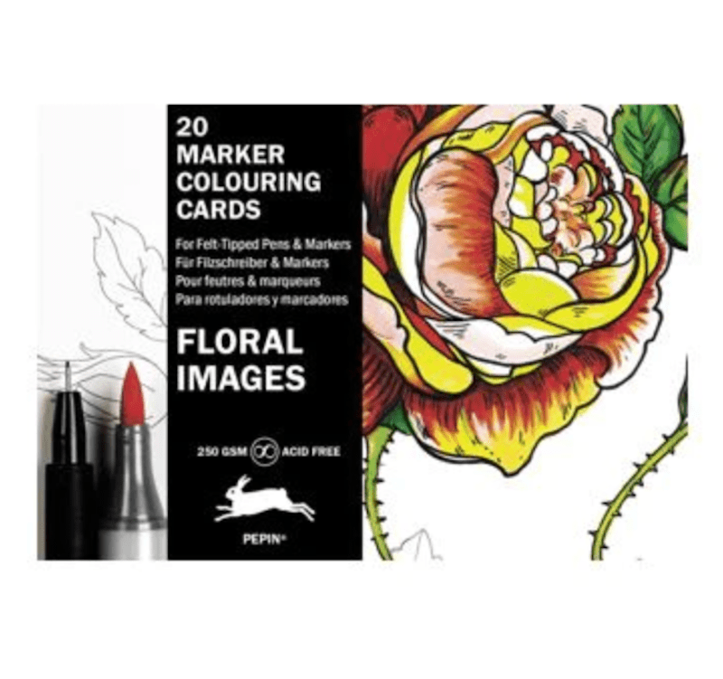 Pepin Marker Colouring Card Books contain 20 cards, made of professional-quality bleedproof paper specially formulated for use with felt-tipped pens and markers (alcohol and non-alcohol based).