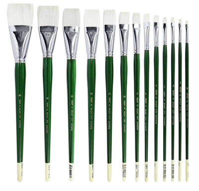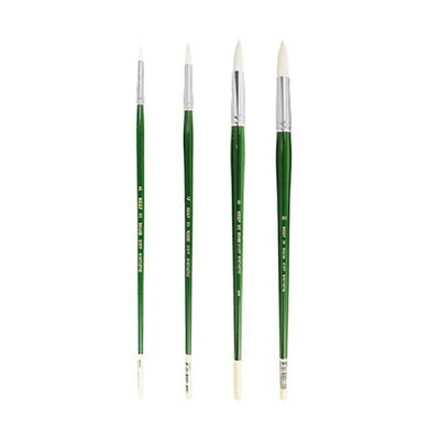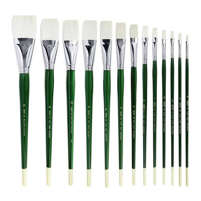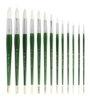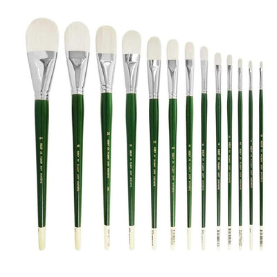 Neef 95 brushes can hold a large amount of paint while maintaining a firm line with a soft brush stroke. Each brush has a seamless nickel ferrule attached to a long green coloured handle.