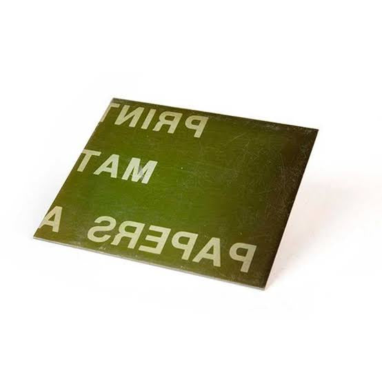 An acid-free etching process for those sensitive to dangerous chemicals. Made from steel-backed photosensitive polymer which is water-soluble. Exposure to UV light makes these areas waterproof. Developing the plate in warm water washes out unexposed areas to create an etching or relief plate. This process gives excellent ink receptivity. Develop quickly using a brush to remove the unexposed portion. Dry, then harden the plate in sunlight.